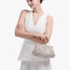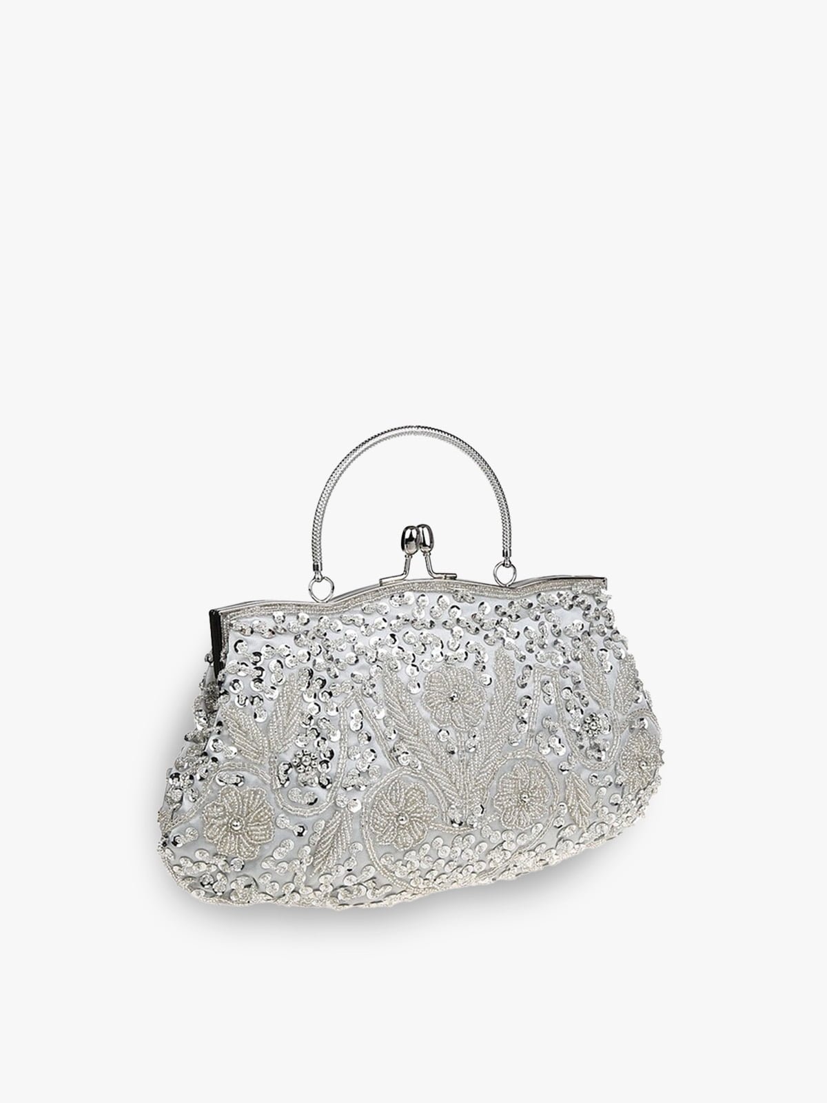 The “Moonlit Garden” evening bag enchants with its delicate floral patterns, reminiscent of a serene garden bathed in moonlight. With a vintage-inspired frame and a graceful top handle, this elegant accessory combines timeless charm with modern sophistication, making it perfect for any special occasion.