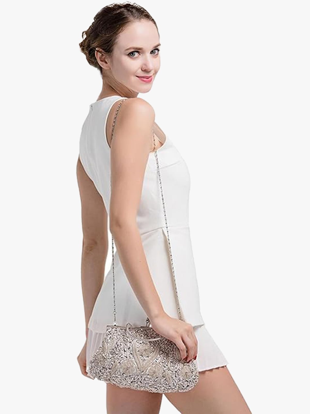 Avoid washing or cleaning. Handle with care to protect the crystals; avoid scrubbing, which can harm its appearance. Store separately from items with loose threads or rough textures to prevent snagging. Keep it safe in the provided protective bag when not in use.